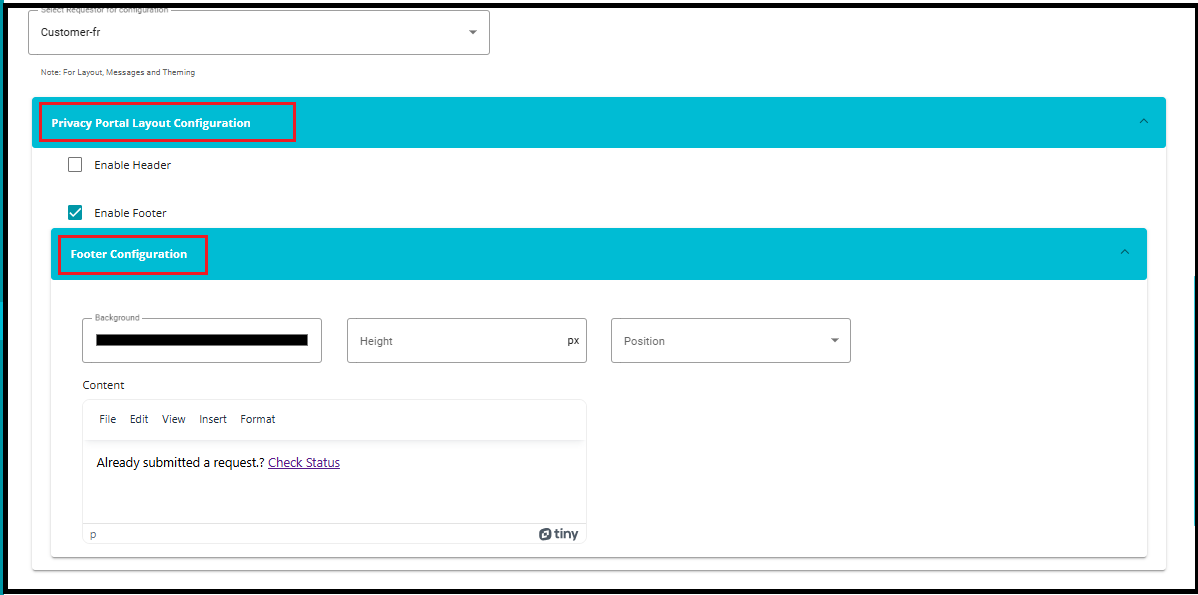1. Click on "Footer Configuration" under the Privacy Portal Layout Configuration section.