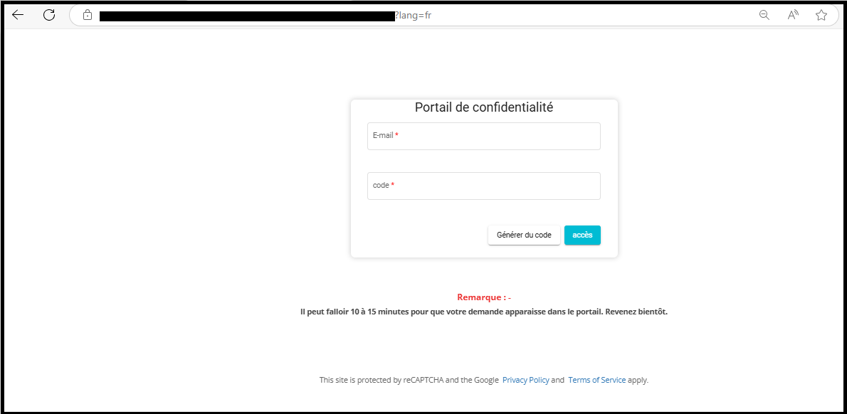 • Open the Privacy Portal link in your browser.