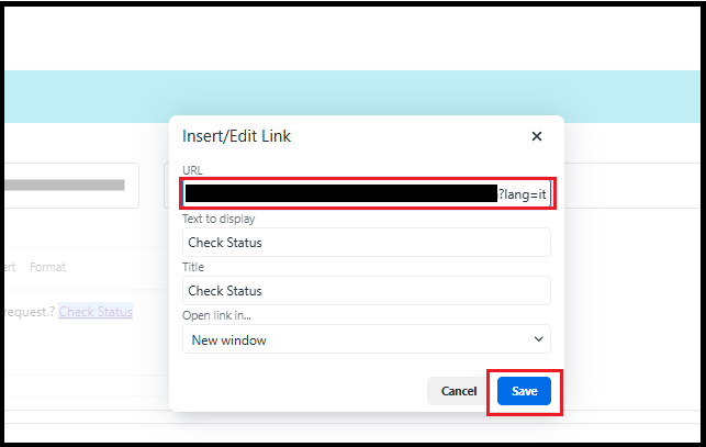 • If the link is placed in the footer, right-click on "Check Status" to edit it.