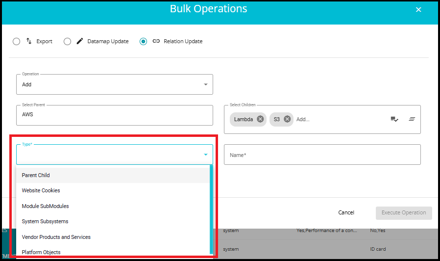 The Bulk Add/Update Relations interface is designed to streamline the process of managing relationships between multiple systems within an organization or platform. Instead of manually linking systems one by one, this tool allows users to select a group of systems in bulk and define how they are related - all in a single operation.