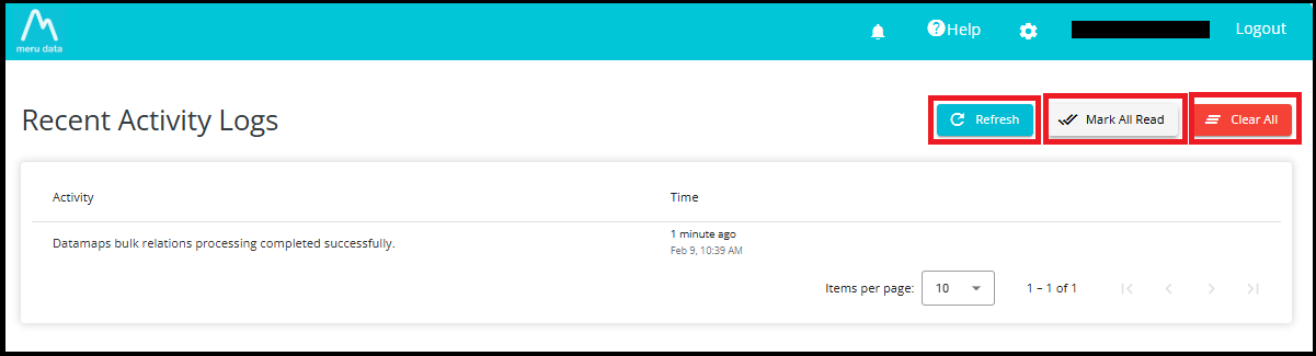 The Activity Logs page provides three important control buttons---Refresh, Mark All Read, and Clear All---to help you manage your notifications efficiently.