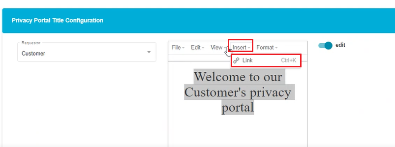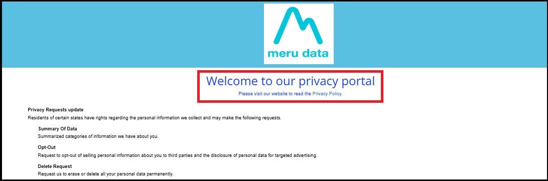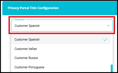 The privacy portal's title (header displayed on the welcome screen) can be configured in this section. For multiple requestors, you can differentiate the title by changing the requestor type.