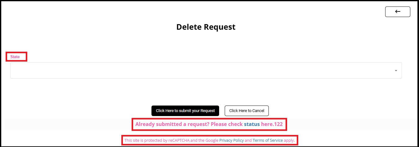 • The Privacy Portal Recaptcha Text feature allows you to configure the reCAPTCHA message for multiple requestors, ensuring users see text appropriate for their language or region.