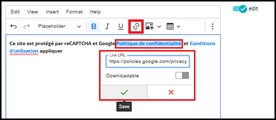 5. Click the ✔ (Save) button to apply the hyperlink.