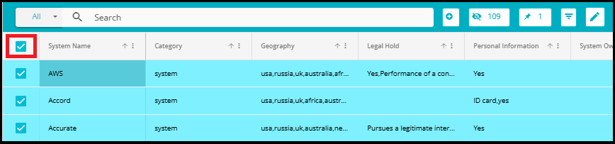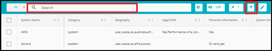 - Now the configuration will filter the results further and only provide the systems with Australia as the value in the geography field and which have the value Yes in the Personal Information field. In a similar way, the systems can be filtered to bring the desired results.