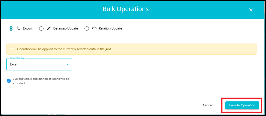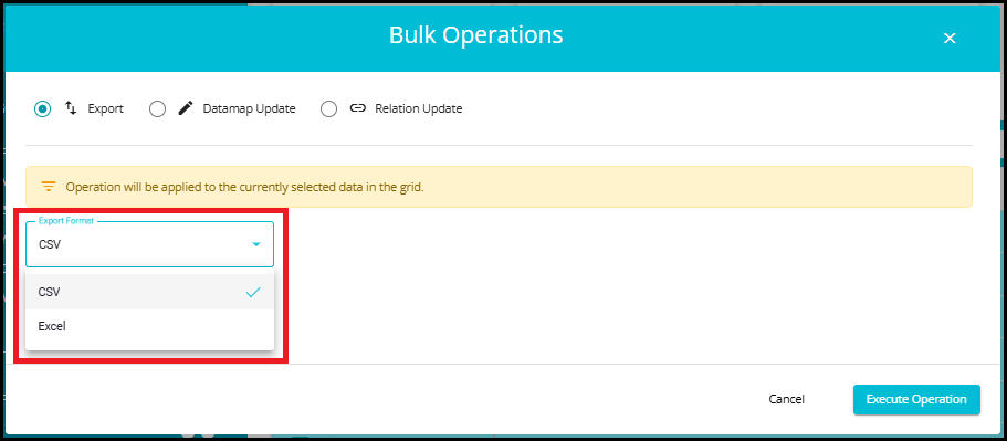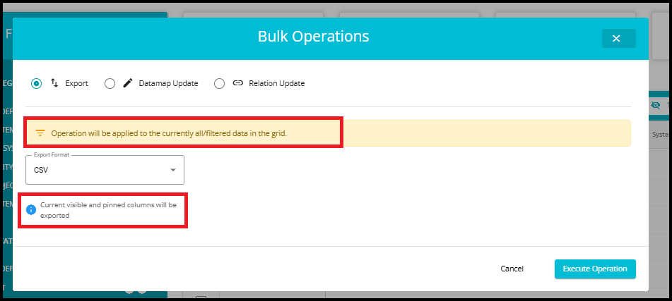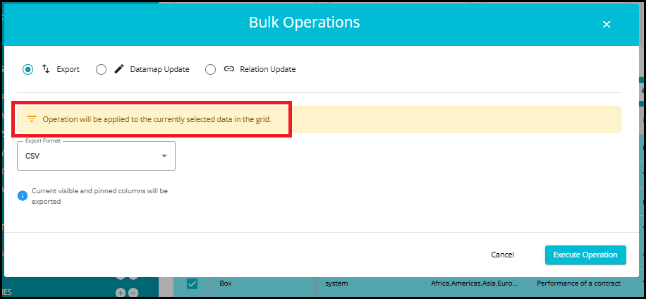 - If you select specific systems and then click Bulk Operations, you will see the message: "Operation will be applied to the currently selected data in the grid."