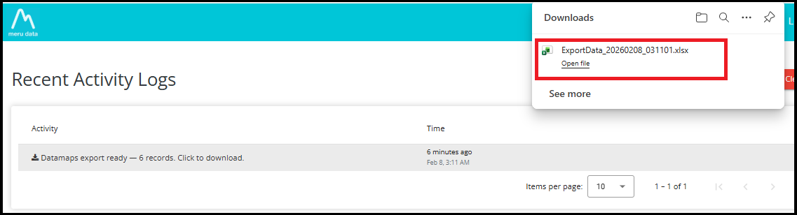Click on "Datamaps export ready --- x records. Click to download." To download your file.