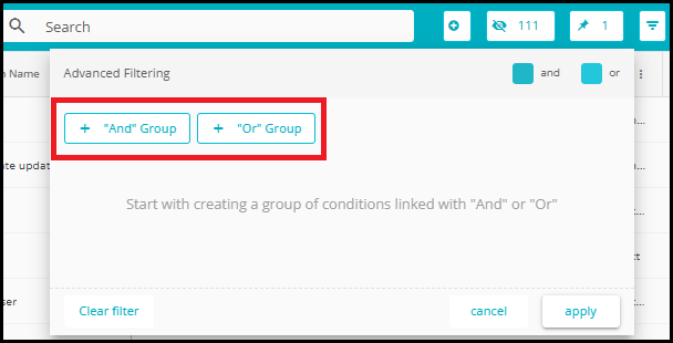 Click the tick symbol (✔) to add more filters or groups before applying them all together.
