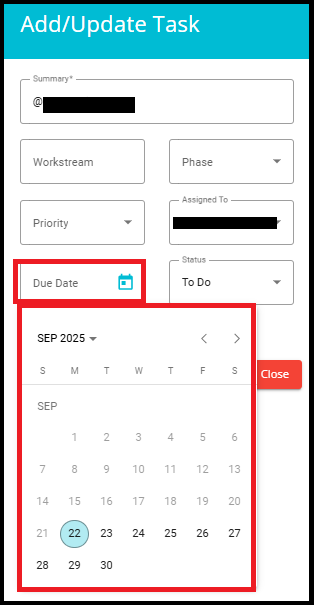 - Due Date: Set the date by which the task is to be completed.