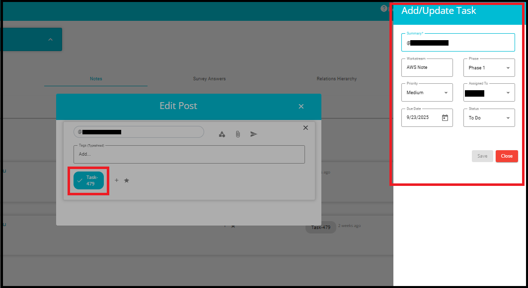 b. After making changes, click Save to update the task or Close to exit without saving.