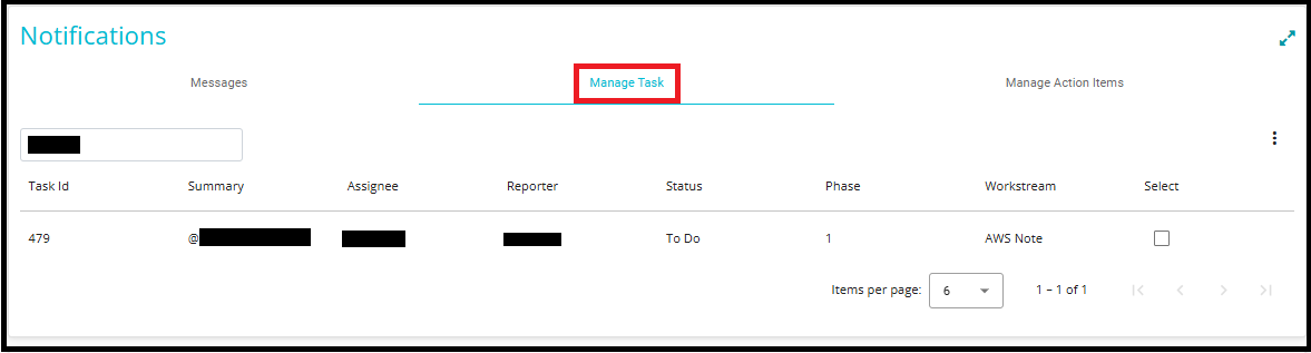 - To manage notes that are linked to tasks, go to the Manage Task tab under the Notifications section.