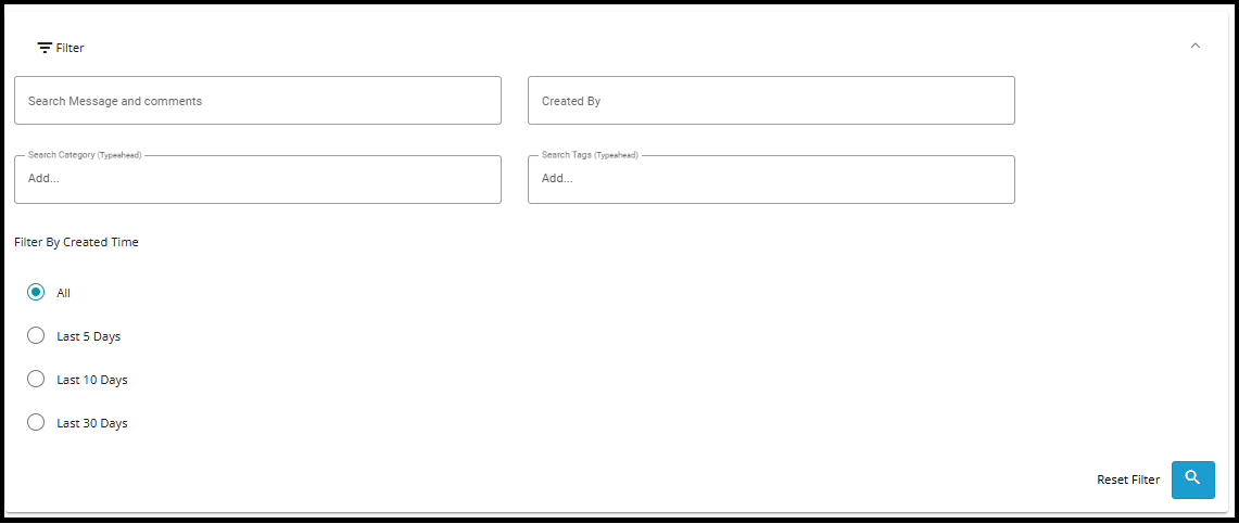 - Here you can search for Notes by their content/message, the name of the user it was created by its' category or its Tags. Notes can also be filtered by time.