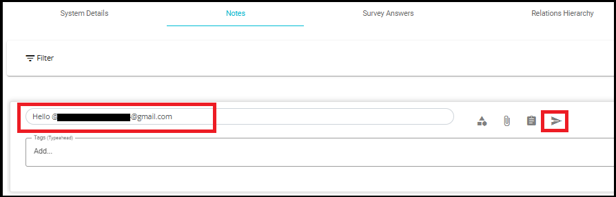 - Once the note is sent, the tagged users (those mentioned using the "@" symbol) can view it on their Dashboard under the Notifications section, in the Messages tab.